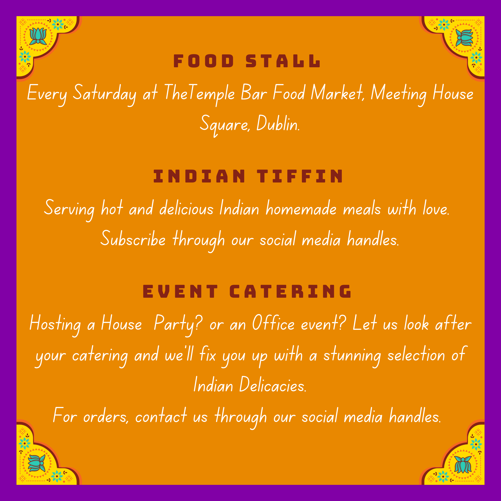Delhi2Dublin is an Authentic Food stall with the taste of a Mom's food as our chefs are none other than our lovely Mom because we know when its food, no one can satisfy the taste buds as much as Mom's Food We serve Authentic North Indian food with a variety of food items from different parts of India and an ever evolving menu, we try to bring food items from differnet parts of India to the heart of Dublin.